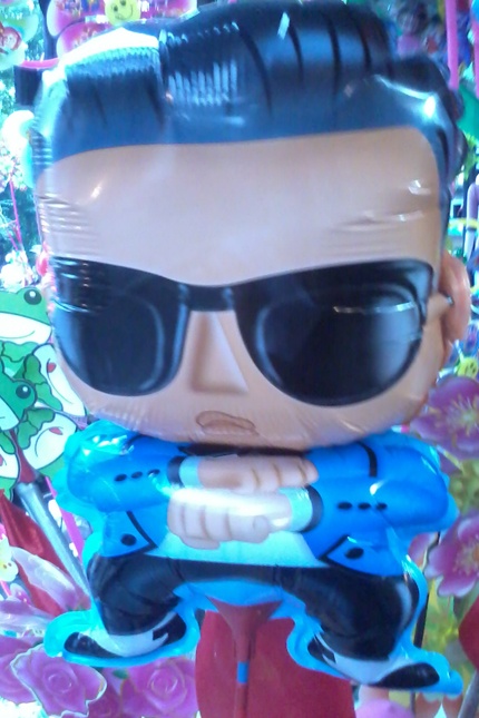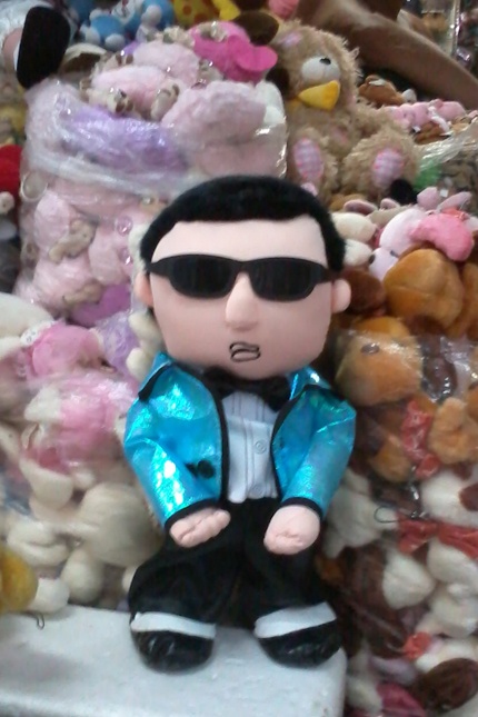 Bên cạnh những chiếc mặt nạ còn có bóng bay hay đồ chơi bằng bông hình Psy. Những anh chàng Psy bằng bông không chỉ rất bắt mắt trong bộ vest màu xanh và đeo kính đen mà còn có thể “nhảy ngựa” lắc lư trên nền nhạc của ca khúc Gangnam style nổi tiếng.