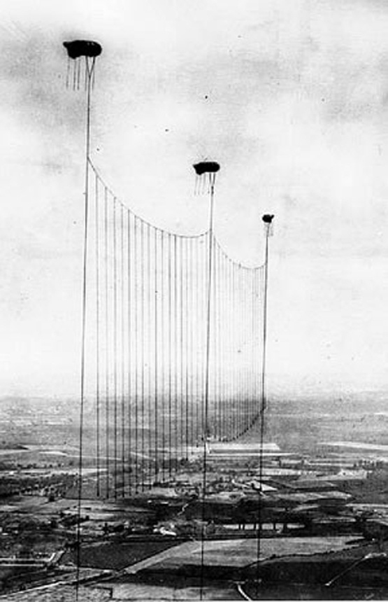 | Hàng rào được dựng lên bằng khinh khí cầu bảo vệ thủ đô London của Anh trong chiến tranh thế giới lần thứ nhất. |