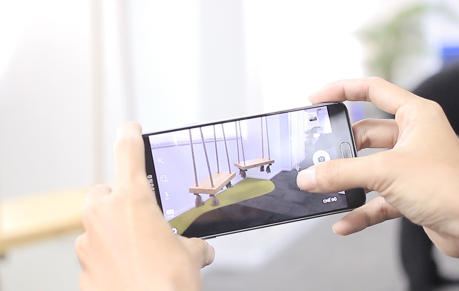 | Điểm thú vị trên Galaxy A7 là người dùng có thể chọn điểm lấy nét và điều chỉnh thanh ánh sáng khi chụp. Người dùng cũng có thể nhấp đúp phím Home để mở nhanh máy ảnh. |