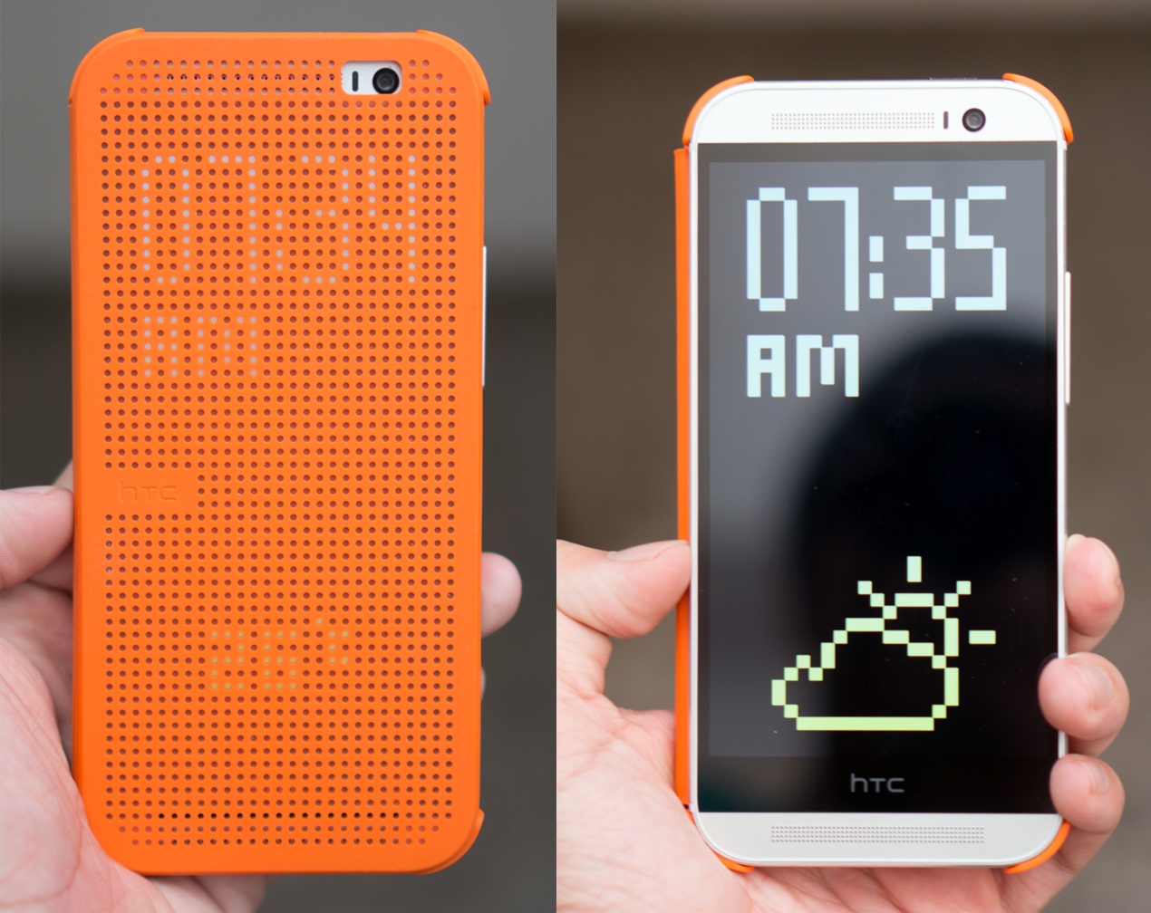 HTC One M8 có một phụ kiện mang tên DotView. Chiếc vỏ này không được tặng kèm và hiện có giá bán lẻ 1,5 triệu đồng với chức năng chính là bảo vệ, xem nhanh thông tin về cuộc gọi, tin nhắn, nhiệt độ thời tiết,... trên màn hình chính.