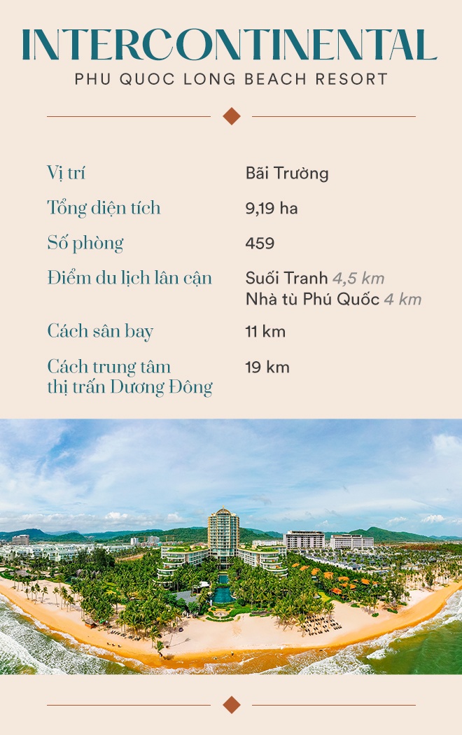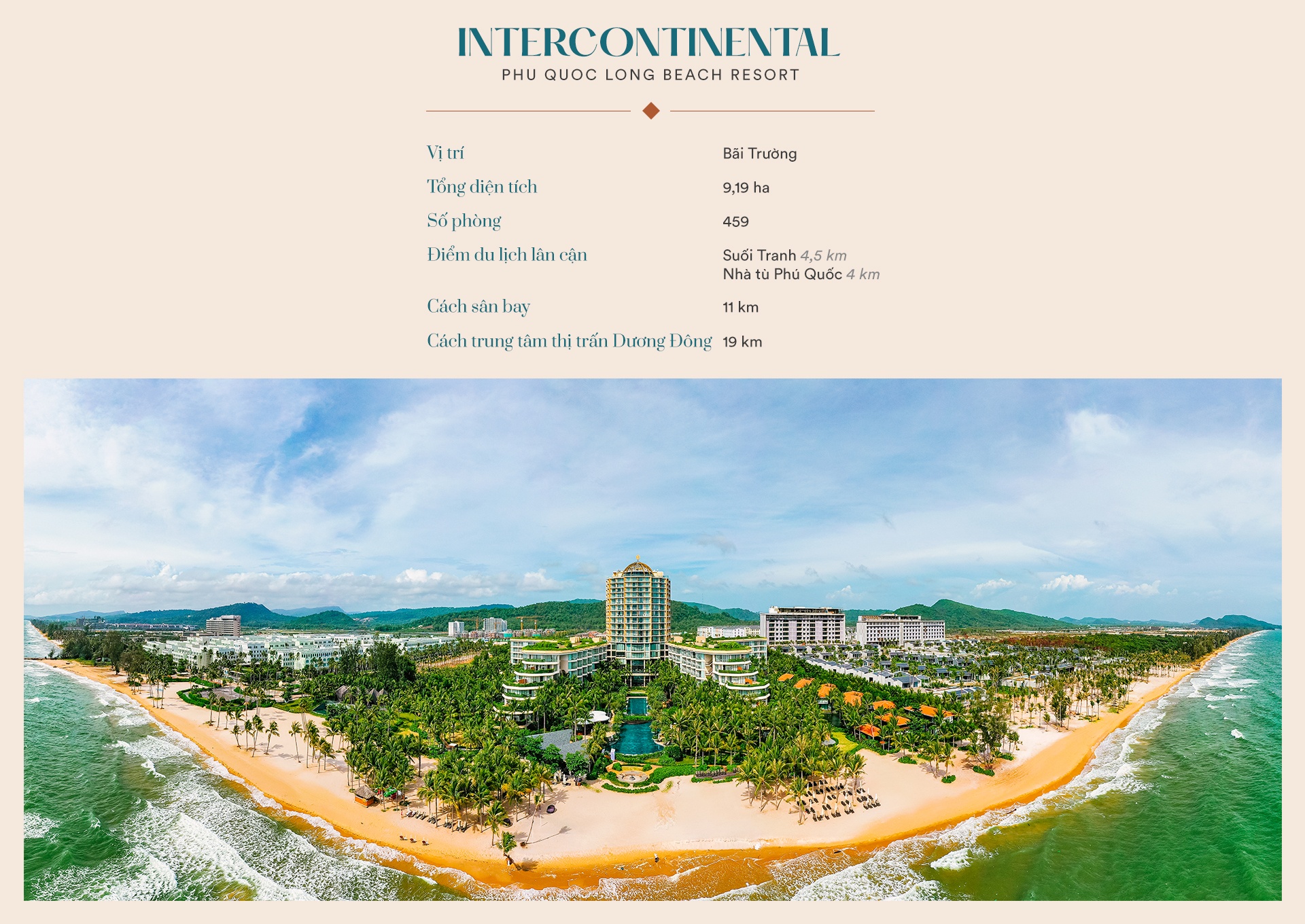 InterContinental Phu Quoc Long Beach resort là điểm lưu trú khá mới nằm ở khu vực Bãi Trường, một trong những bãi biển hoang sơ nhất Phú Quốc. Nơi đây cách sân bay khoảng 11 km, 15 phút đi xe taxi.