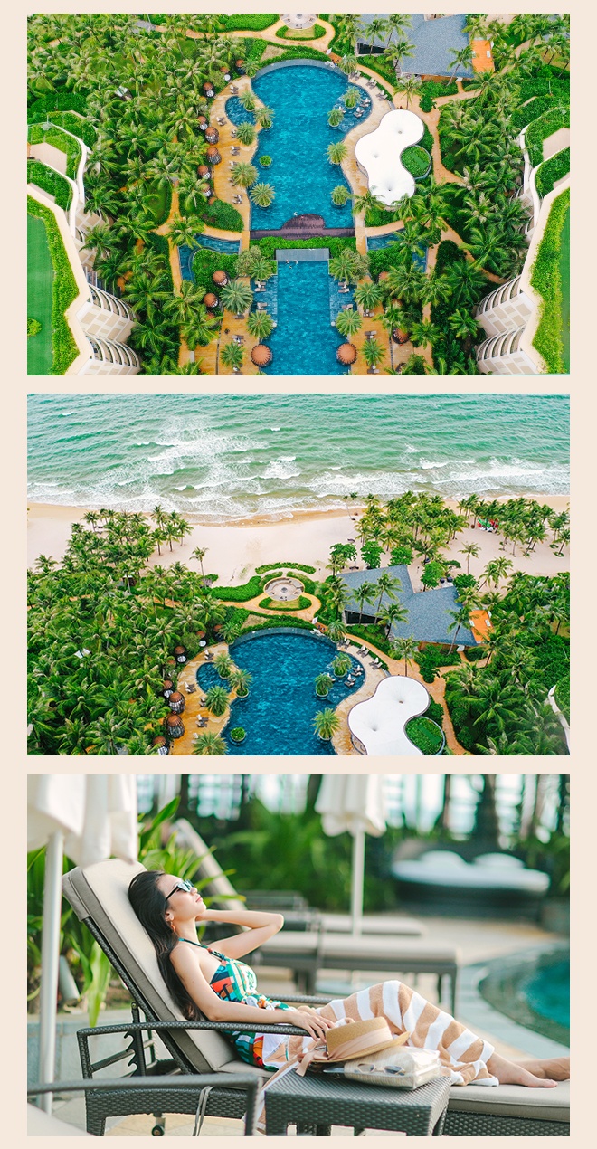 Hai hồ bơi vô cực nằm ngay trung tâm resort sở hữu background hoành tráng là toà Sky Tower cao 19 tầng. Đây là góc chụp gần như du khách nào đến nghỉ dưỡng ở đây cũng mang về cho mình vài tấm ảnh đẹp.