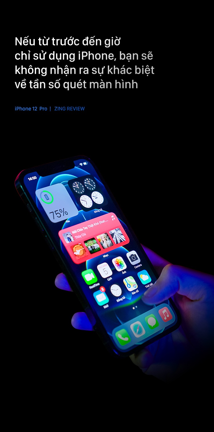 Nếu từ trước đến giờ chỉ sử dụng iPhone, bạn sẽ không nhận ra sự khác biệt. Nó vẫn mượt mà như các phiên bản trước đây. Tuy vậy, nếu đã sử dụng màn hình 120 Hz, sự khác biệt về độ mượt mà khi cuộn trang, vuốt chạm sẽ được cảm nhận rất rõ ràng. Tuy vậy, tần số quét cao đồng nghĩa máy sẽ hao pin hơn.