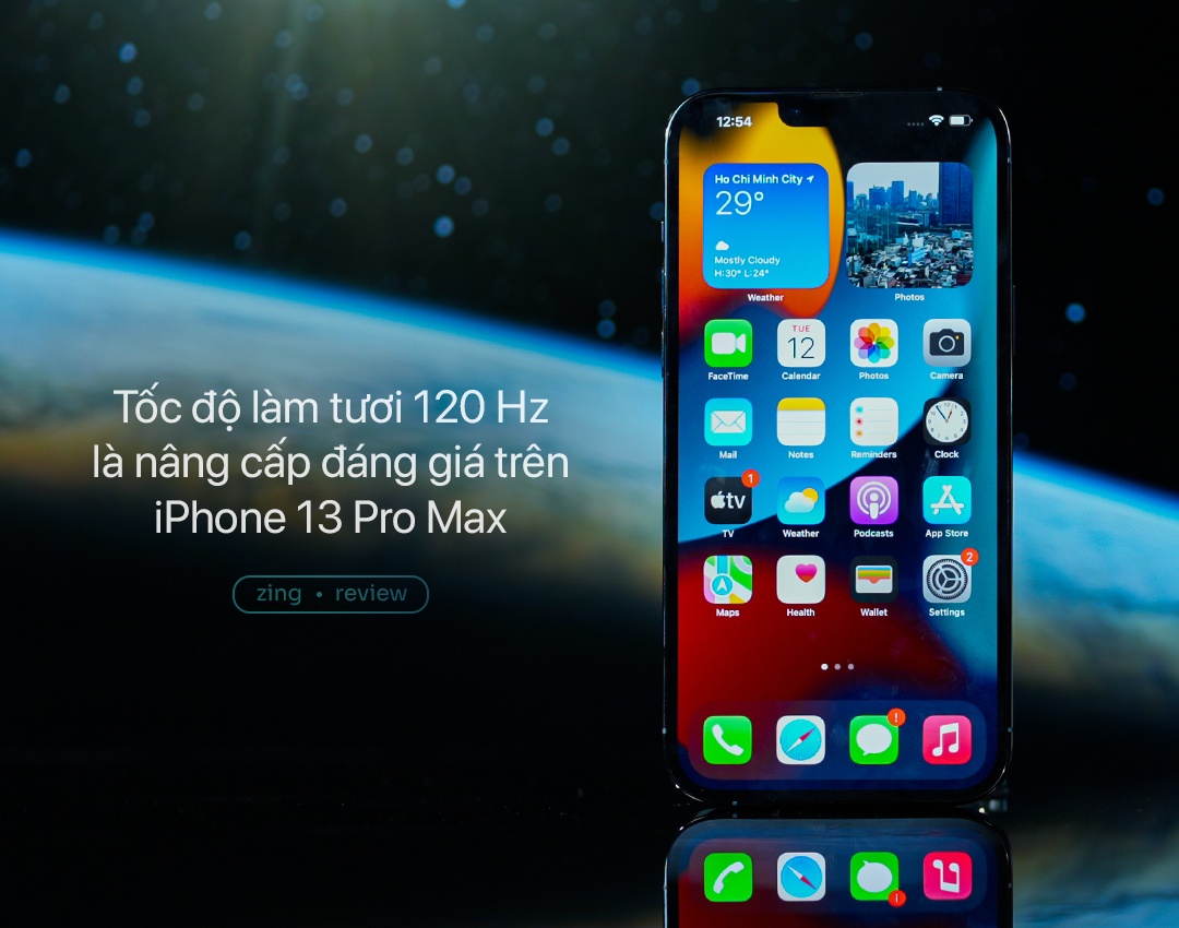 Màn hình 120 Hz tạo ra khác biệt ngay ở những trải nghiệm thiết lập đầu tiên hay việc vuốt để mở màn hình chính. Apple cũng áp dụng công nghệ LTPO để thay đổi tốc độ làm tươi tùy theo tác vụ người dùng sử dụng để tiết kiệm năng lượng.