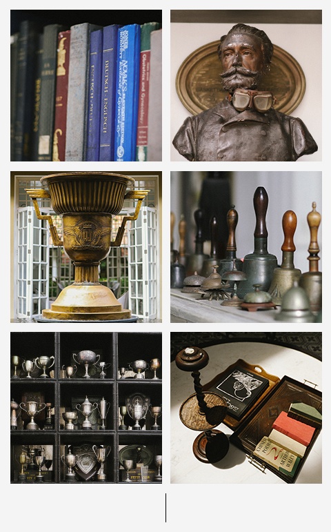 Lối đi trưng bày kín bộ sưu tập cúp chiến thắng mà các đội thể thao mang về và những bức ảnh lưu niệm sinh viên. Gần 5.000 cổ vật trang trí được kiến trúc sư Bill Bensley và cộng sự sưu tầm ở 40 quốc gia châu Âu.
