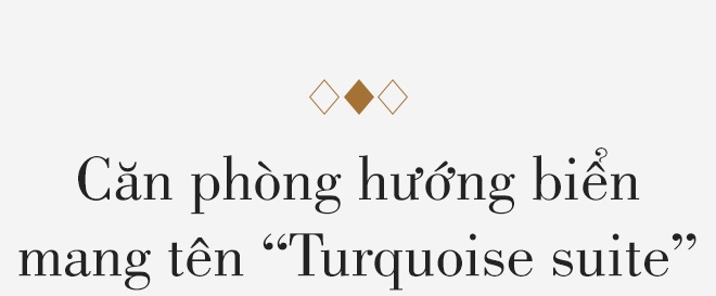 Để trải nghiệm trọn vẹn kỳ nghỉ dưỡng sang trọng, tôi thử chọn căn Turquoise suite, một trong những hạng phòng đắt đỏ và phải đặt sớm để giữ chỗ. Turquoise suite gồm một phòng khách, một phòng ngủ và ban công, diện tích tổng 90 m2, khá rộng rãi cho 2 người.