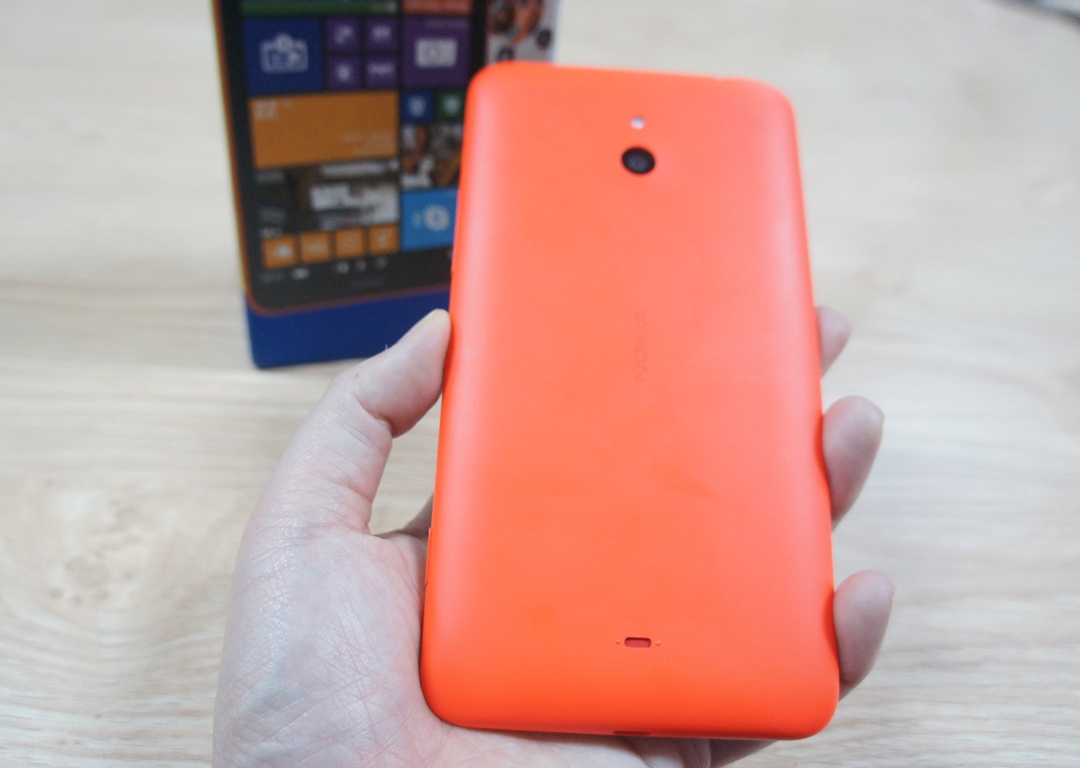 Người dùng sẽ dễ nhầm tưởng Lumia 1320 được thiết kế nguyên khối bởi nó ko sở hữu bất cứ một mối nối hoặc khe hở nào để tháo nắp sau. Trên thực tế, vỏ sau của máy có thể tháo được. Cách thiết kế nắp sau ôm trọn lấy màn hình của Lumia 1320 cũng rất độc đáo, tạo cảm giác hoàn thiện.