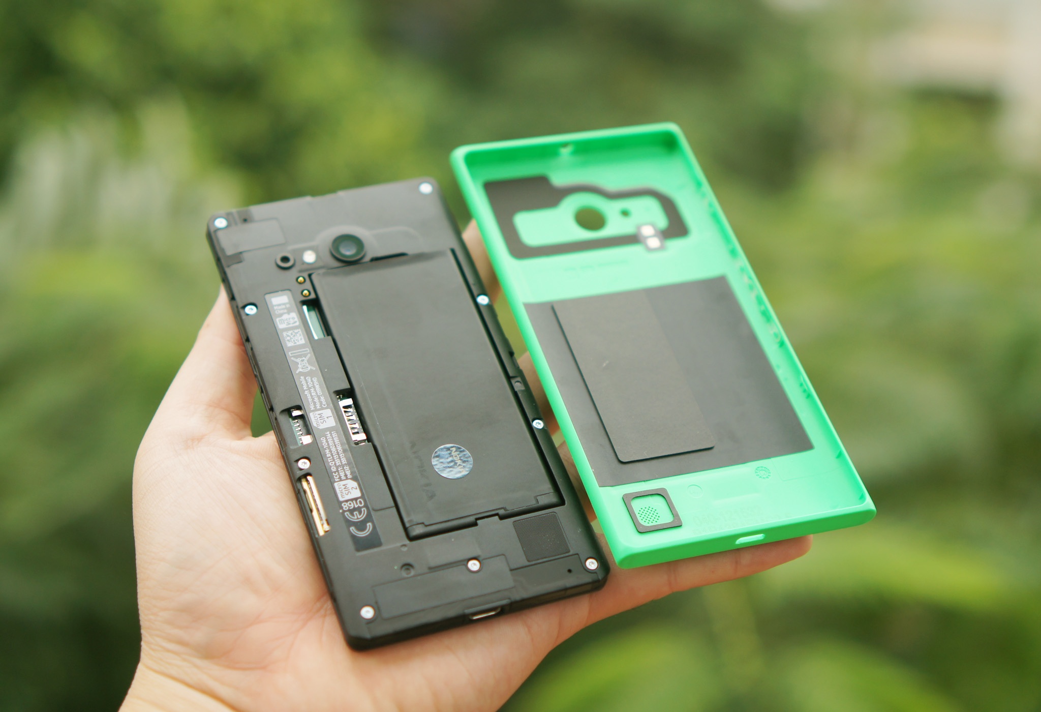 Nhiều người sẽ nhầm tưởng Lumia 730 sở hữu thiết kế nguyên khối bởi máy chắc và không có điểm nối nào. Trên thực tế, nó có một bộ vỏ tách rời, khá khó để tháo ra khỏi phần thân máy. Phần tiếp xúc của vỏ và thân máy trùng với cạnh màn hình.