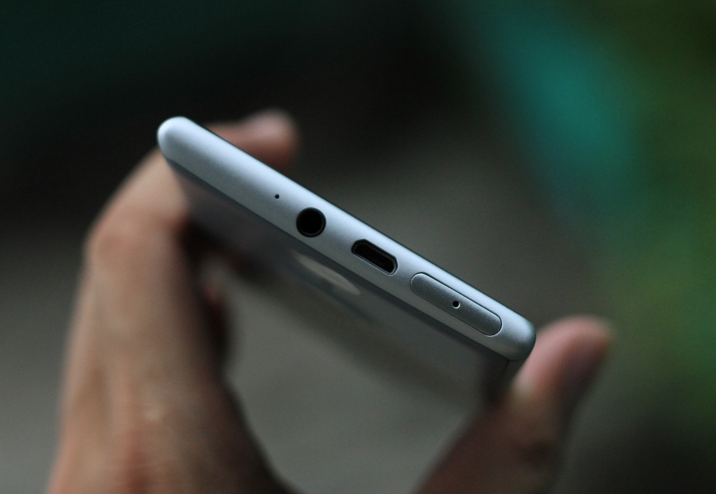 Phần đục đẽo nhiều nhất trong khung nhôm của Lumia 925 chính là phía trên. Tại đây, giắc cắm tai nghe 3,5 mm, cổng microUSB, khay SIM đặt cạnh nhau cùng với lỗ mic.