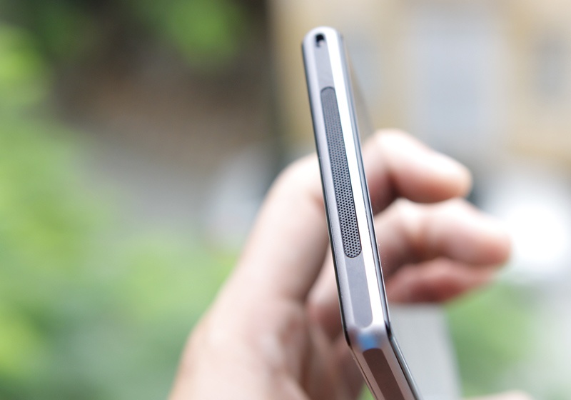 Điểm nhấn lớn nhất trên chiếc Z1 so với Xperia Z phải kể đến phần khung nhôm của máy. Có vẻ như, khung này được cắt gọt từ một khối nhôm nguyên khối. Do đó, bạn không hề tìm thấy một điểm nối hay sự cắt ghép nào như trên iPhone 5 hay HTC One.