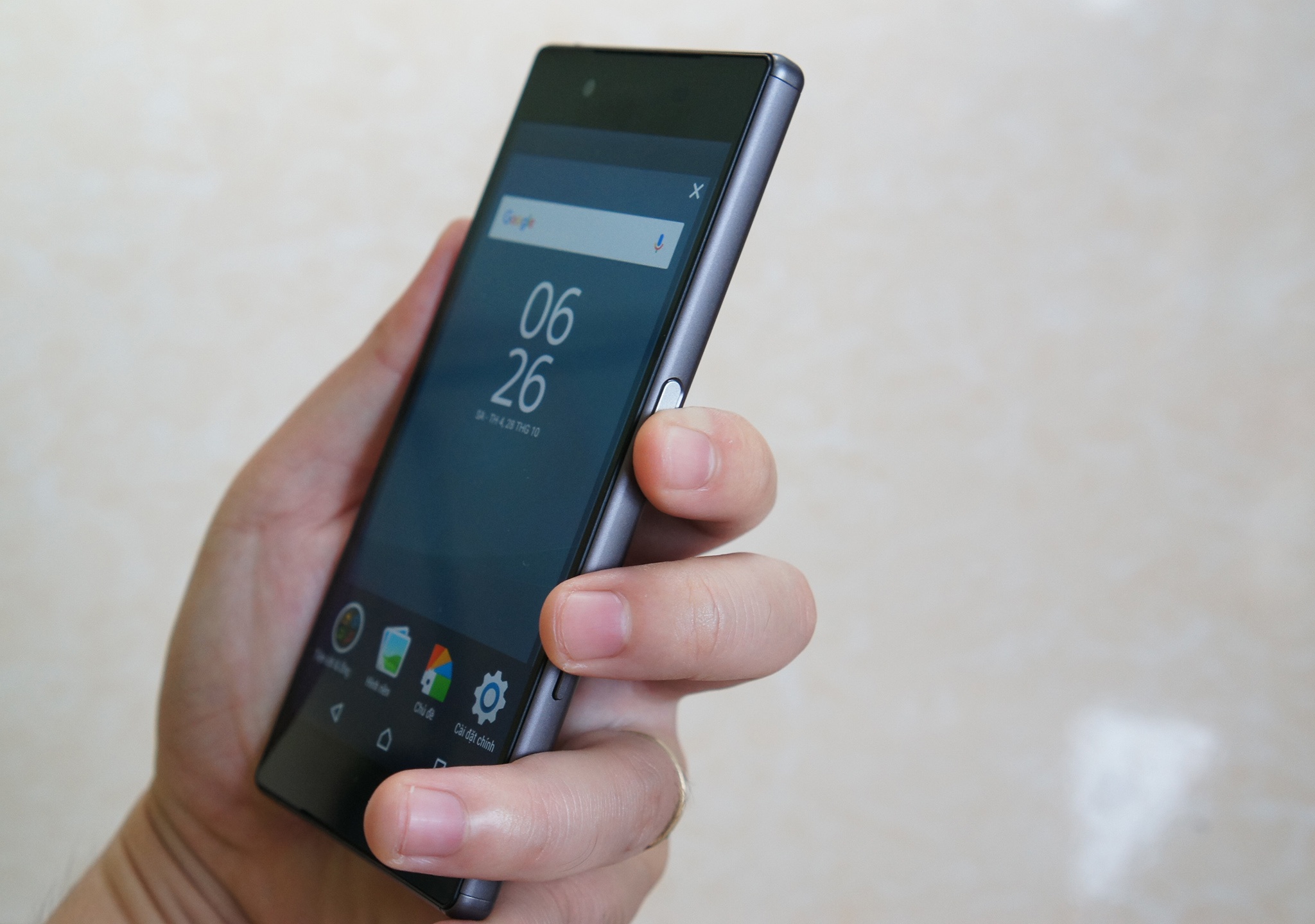 Điểm yếu thứ 2 chính là cảm biến vân tay trên Xperia Z5. Vị trí đặt cảm biến lạ lẫm ở cạnh phải của máy mang đến trải nghiệm dở tệ. Sony thiết kế cảm biến này cho những người cầm máy bằng tay phải. khi đó, ngón cái của họ sẽ đặt đúng vào vị trí phím nguồn. Thao tác người dùng cần làm là nhất nút nguồn - một cách để mở máy, sau đó giữ tay để mở khoá màn hình. Thao tác này gượng hơn rất nhiều so với cách đặt tay vào phím Home của iPhone.