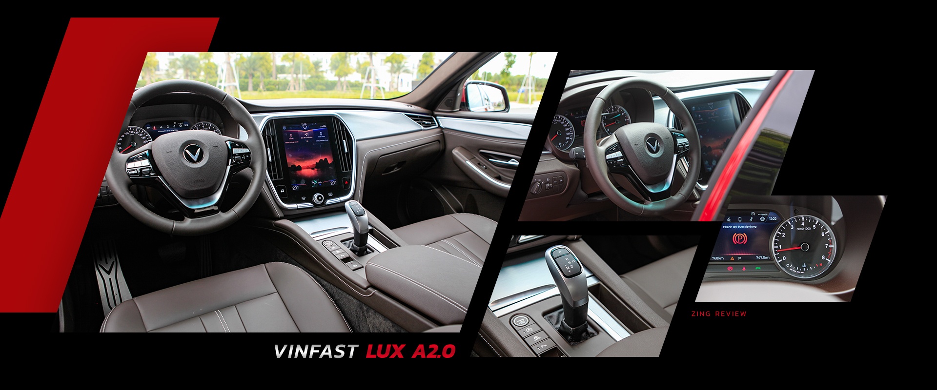 Xét tổng thể, VinFast Lux A2.0 sở hữu một không gian nội thất rộng rãi, hiện đại và sang trọng. Mang thiết kế không quá cầu kỳ, giàu chi tiết nhưng Lux A2.0 tạo thiện cảm với người dùng nhờ cảm giác sờ, chạm cao cấp. Đáng tiếc, các nút bấm nhựa trên vô-lăng hay quanh khu vực cần số có độ hoàn thiện chưa thực sự tốt và chắc chắn.