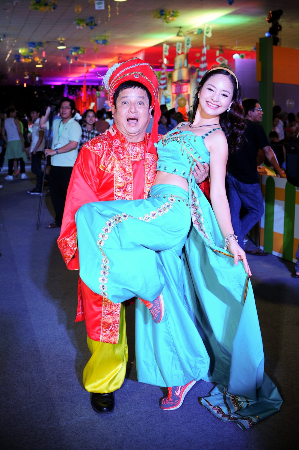 | Danh hài Chí Trung và Lan Phương được dịp hóa thân thành công chúa - hoàng tử để vui chơi cùng các em nhỏ. |