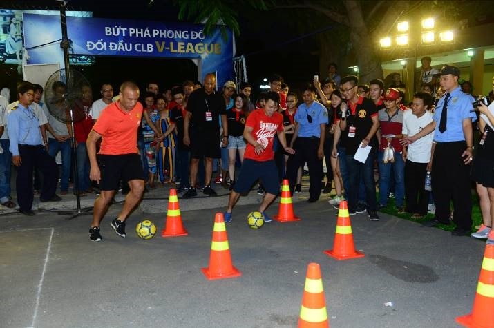 Cựu danh thủ tỏ ra rất tự tin và phong độ khi thực hiện các màn lừa bóng tốc độ, sút vào các ô điểm hay những pha thể hiện kỹ thuật qua các bài tâng bóng nghệ thuật… Sự hòa đồng của hai danh thủ huyền thoại CLB Manchester United đã làm cho không khí trở nên náo nhiệt hơn.