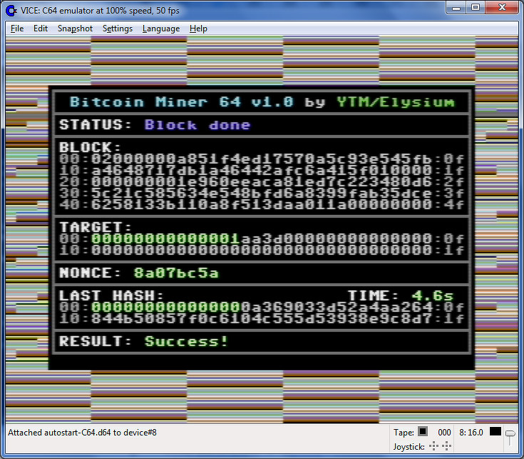 Tỷ lệ băm (hash rate) của Commodore 64 là 0,2 H/s. Ảnh: Decrypt. |