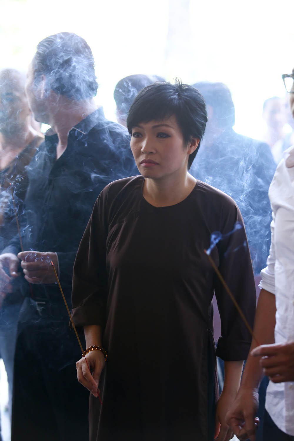 | Ca sĩ Phương Thanh mặc áo nâu sòng của Phật tử tới viếng nhà văn Nguyễn Quang Sáng. Ông ra đi vào chiều ngày 13/2, hưởng thọ 82 tuổi. Trước sự ra đi đột ngột của cha, Quang Dũng đã viết trên trang cá nhân: "Kết thúc một chặng đường. Ba tôi nhà văn Nguyễn Quang Sáng đã chia tay gia đình tôi. Ba đến nơi gặp những bạn bè thân, chú Trịnh Công Sơn, chú Bảo Phúc... Chúc ba vui vẻ nơi ấy! Má và các con yêu ba! Cám ơn thượng đế cho con được là con của ba". |