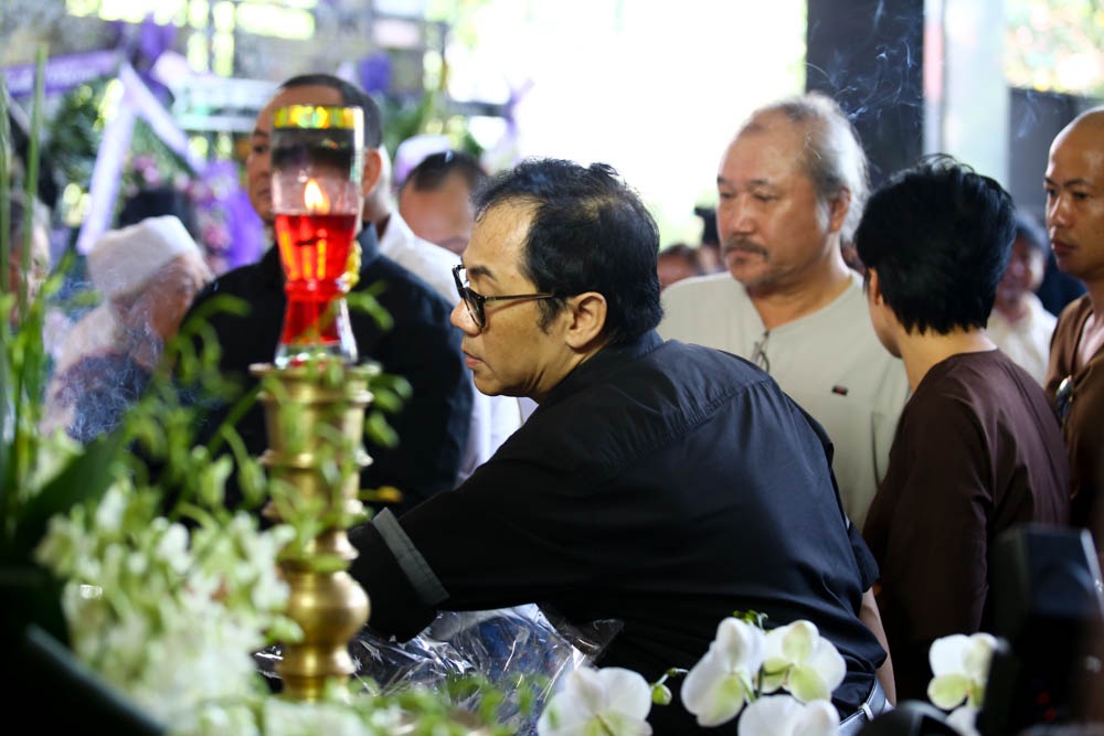 Đạo diễn "Mỹ nhân kế" phải gồng mình để giữ bình tĩnh trong lễ truy điệu nhà văn Nguyễn Quang Sáng. Thỉnh thoảng anh lại lấy tay lau khô nước mắt.