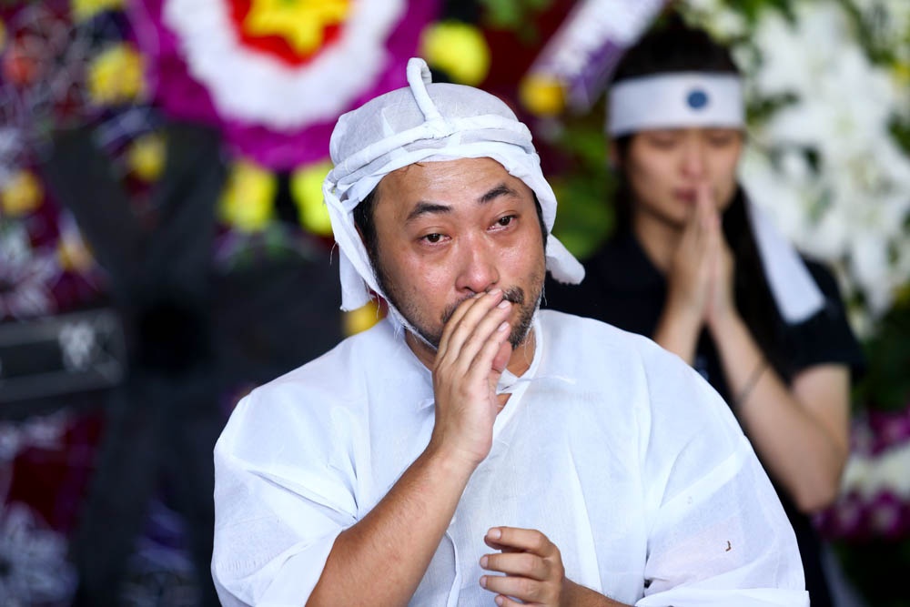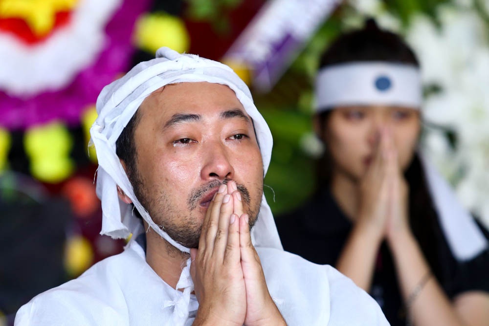 Trong những ngày trước, Quang Dũng vẫn cố gắng kìm nén cảm xúc để chào hỏi, đón tiếp bạn bè, đồng nghiệp tới chia sẻ cùng gia đình mình. Tuy nhiên, trong tang lễ của cha, anh đã không giấu được những giọt nước mắt.