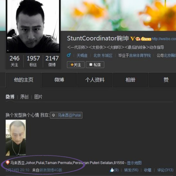 Trưa 10/3, ngôi sao của bộ phim Thập diện mai phục viết trên trang mạng xã hội cá nhân: "Đoàn phim Thái Bình luân đã trở lại Bắc Kinh tiếp tục công việc. Trước đây, mọi người gặp nhau thường bàn chuyện ai mập lên, ai ốm đi. Nhưng hôm nay, mọi sự chú ý đều tập trung vào chuyến bay mất tích của Hãng hàng không Malaysia và người anh em đã cùng vất vả khi thực hiện bộ phim Nhất đại tông sư. Anh ấy là đệ tử đắc lực của đạo diễn Viên Hòa Bình, người cha của 2 đứa con, một người hiền lành, chăm chỉ. Một buổi sáng bi thương, bao nhiêu kỷ niệm về anh ấy hiện rõ trước mắt. Xin gửi lời cầu nguyện đến tất cả những người mất tích, mong rằng sẽ có kỳ tích xuất hiện".