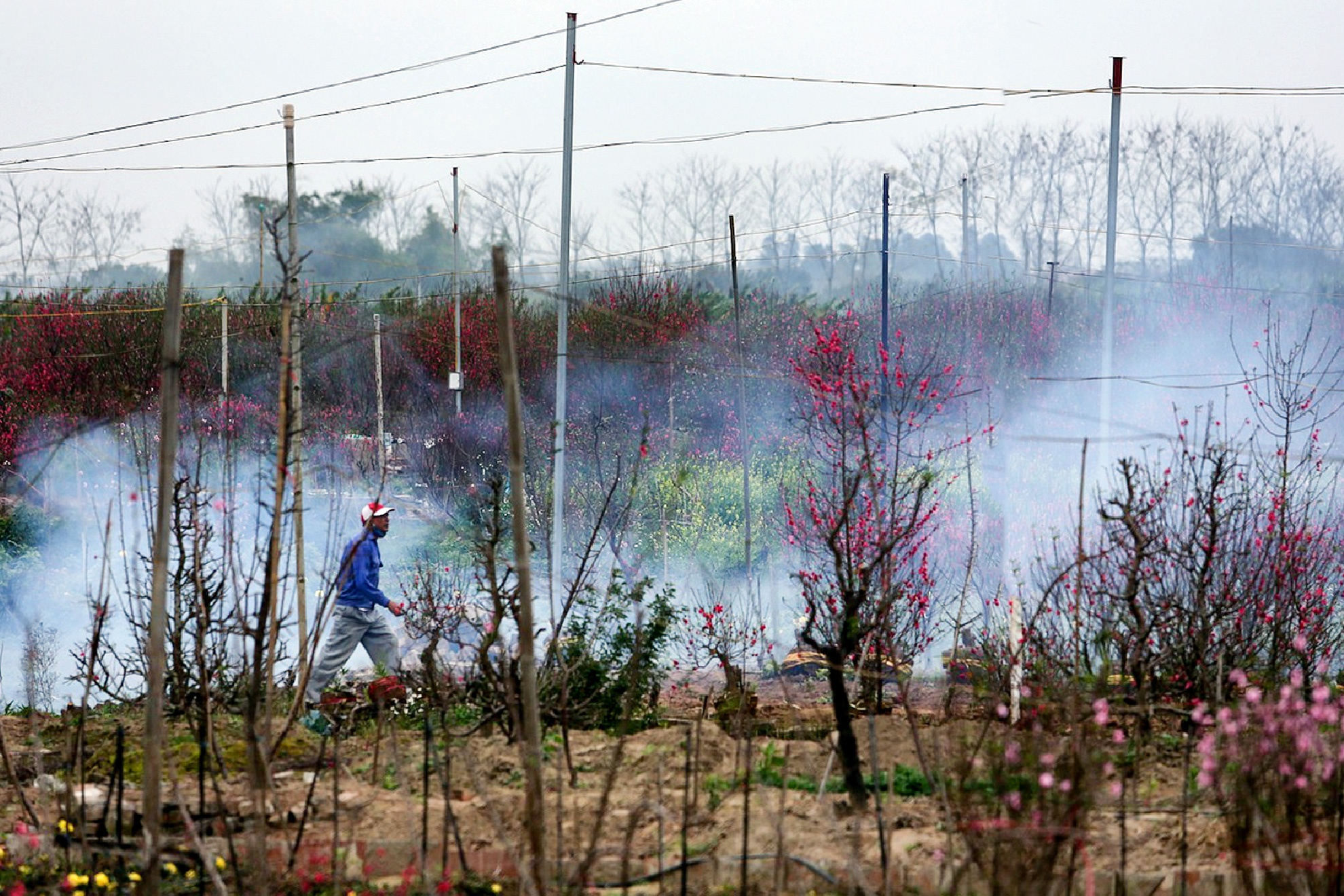 | Đầu mùa đông, thời tiết ấm áp, người trồng đào mất ăn mất ngủ vì lo đào nở sớm. Tuy vậy, đợt rét đậm kéo dài cuối tháng Chạp như đã cứu "một bàn thua" cho nông dân làng Nhật Tân. Đào nở rực rỡ đúng dịp Tết. |