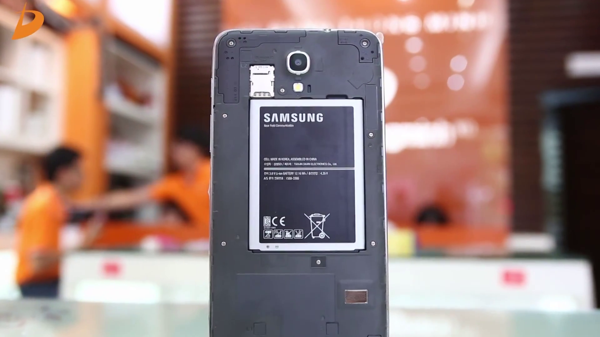 | Mặt lưng máy bằng nhựa có vân giả da giống Galaxy Note 3. |