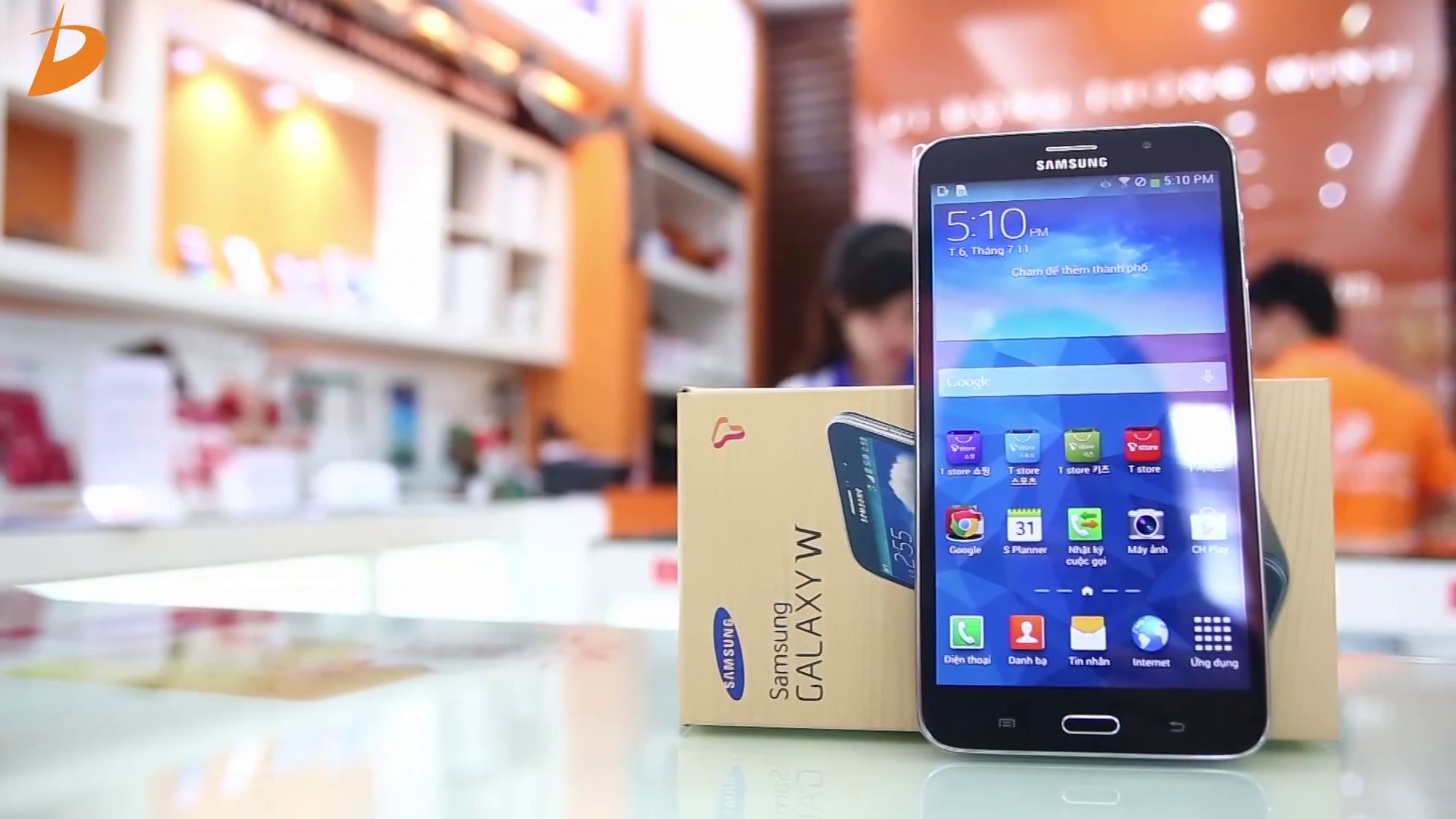 | Galaxy W có màn hình TFT 7 inch độ phân giải HD 720 x 1.280 pixel, vi xử lý lõi tứ 1,2 GHz, RAM 1,5 GB, bộ nhớ trong 16 GB. |