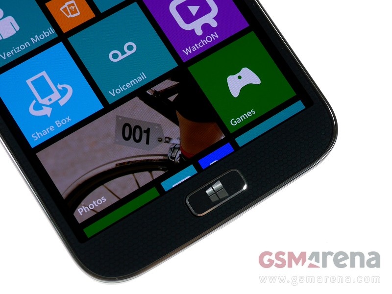 | Nút home vẫn theo phong cách của Samsung trên các dòng smartphone Galaxy nhưng có thên logo Microsoft. |