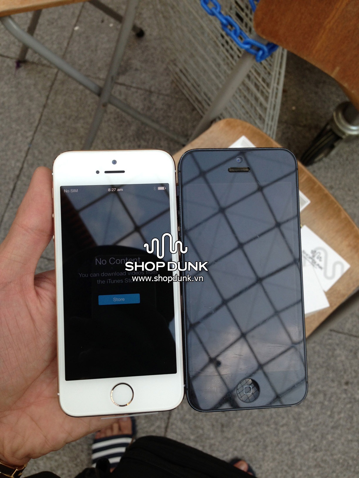 | So sánh iPhone 5S Gold Champagne với đàn anh iPhone 5. |