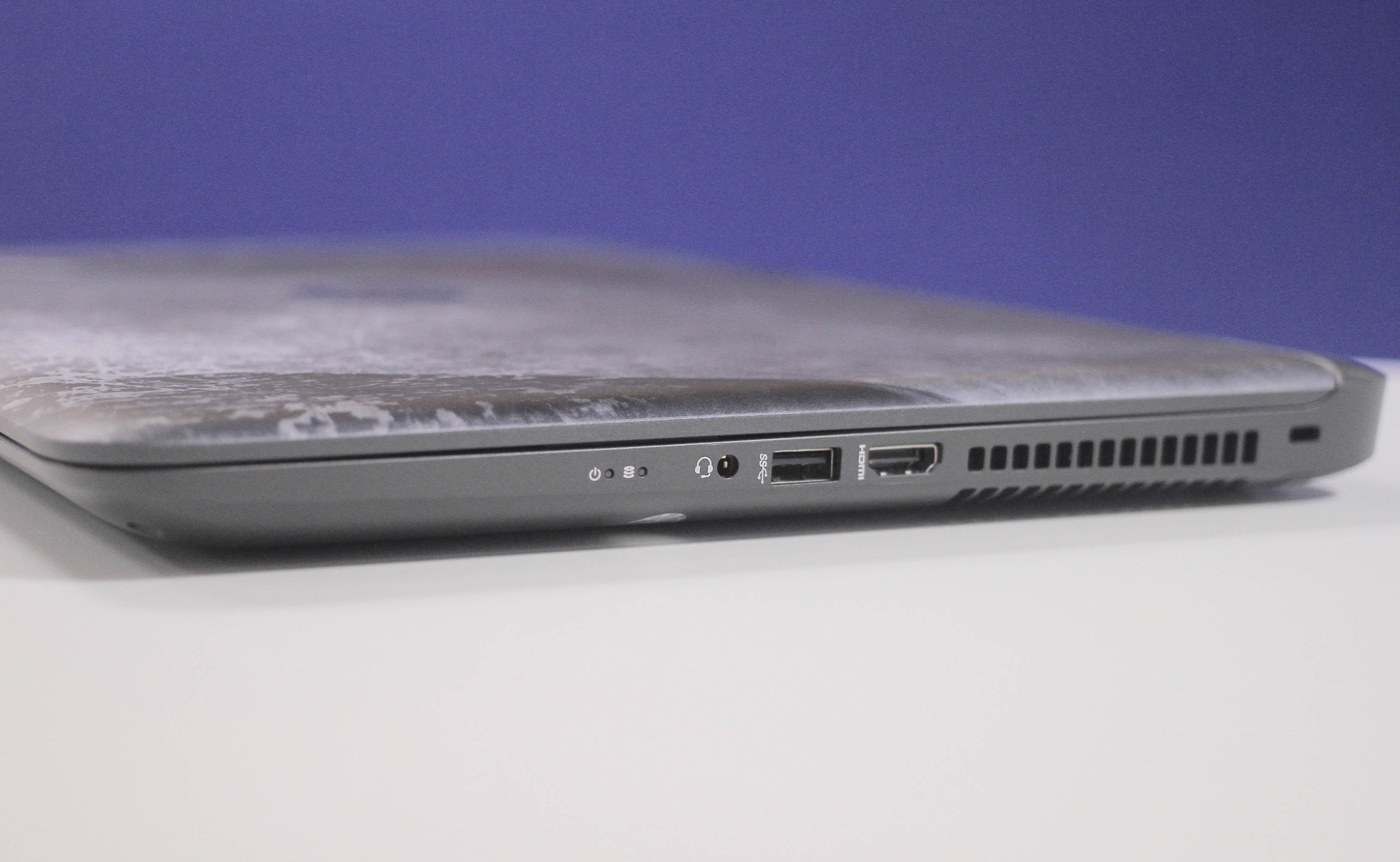 Cạnh phải là đèn báo tín hiệu, giắc cắm tai nghe tích hợp micro, cổng USB 2.0 và cổng kết nối HDMI 1.4a. Khe tản nhiệt được thiết kế khá lớn.