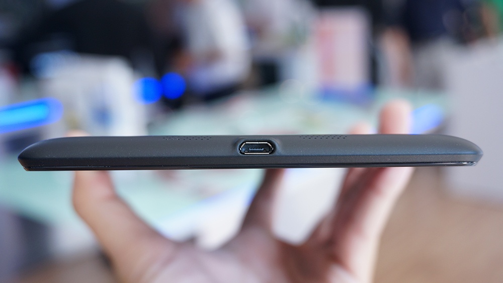 | Hai loa nhỏ và giắc Micro USB ở cạnh dưới. |