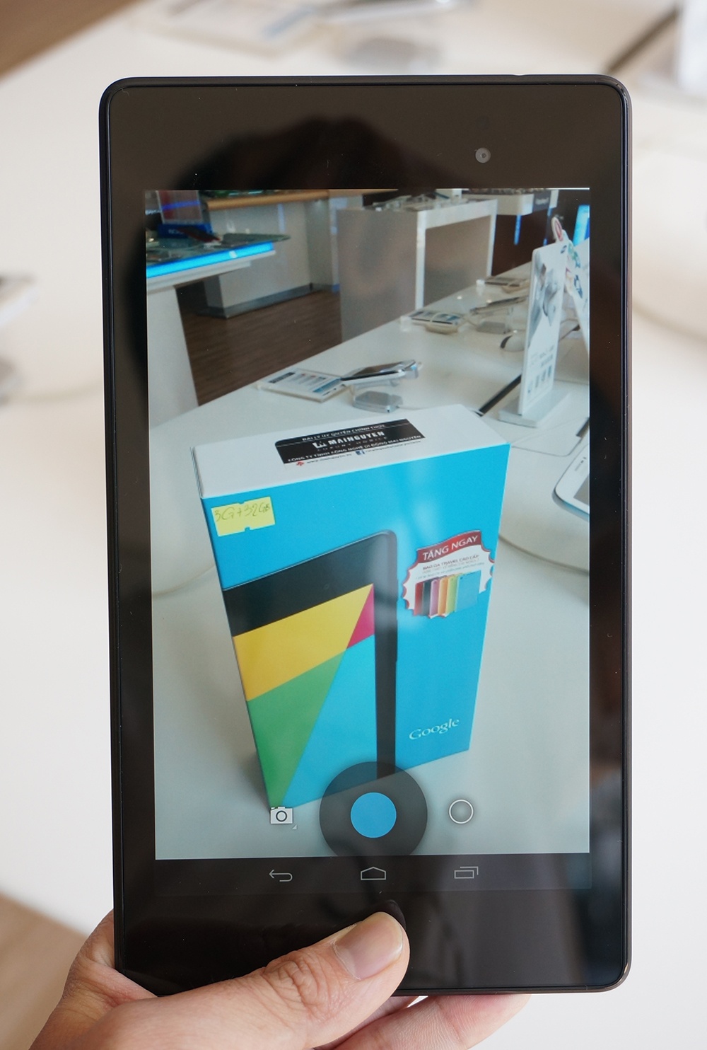 | Trình chụp ảnh của Nexus 7 hoàn toàn giống với trình chụp ảnh của các máy Nexus khác với ba chế độ chụp thông thường, panorama, ảnh 360 độ và một chế độ quay video HD. |