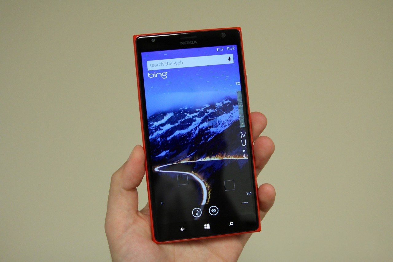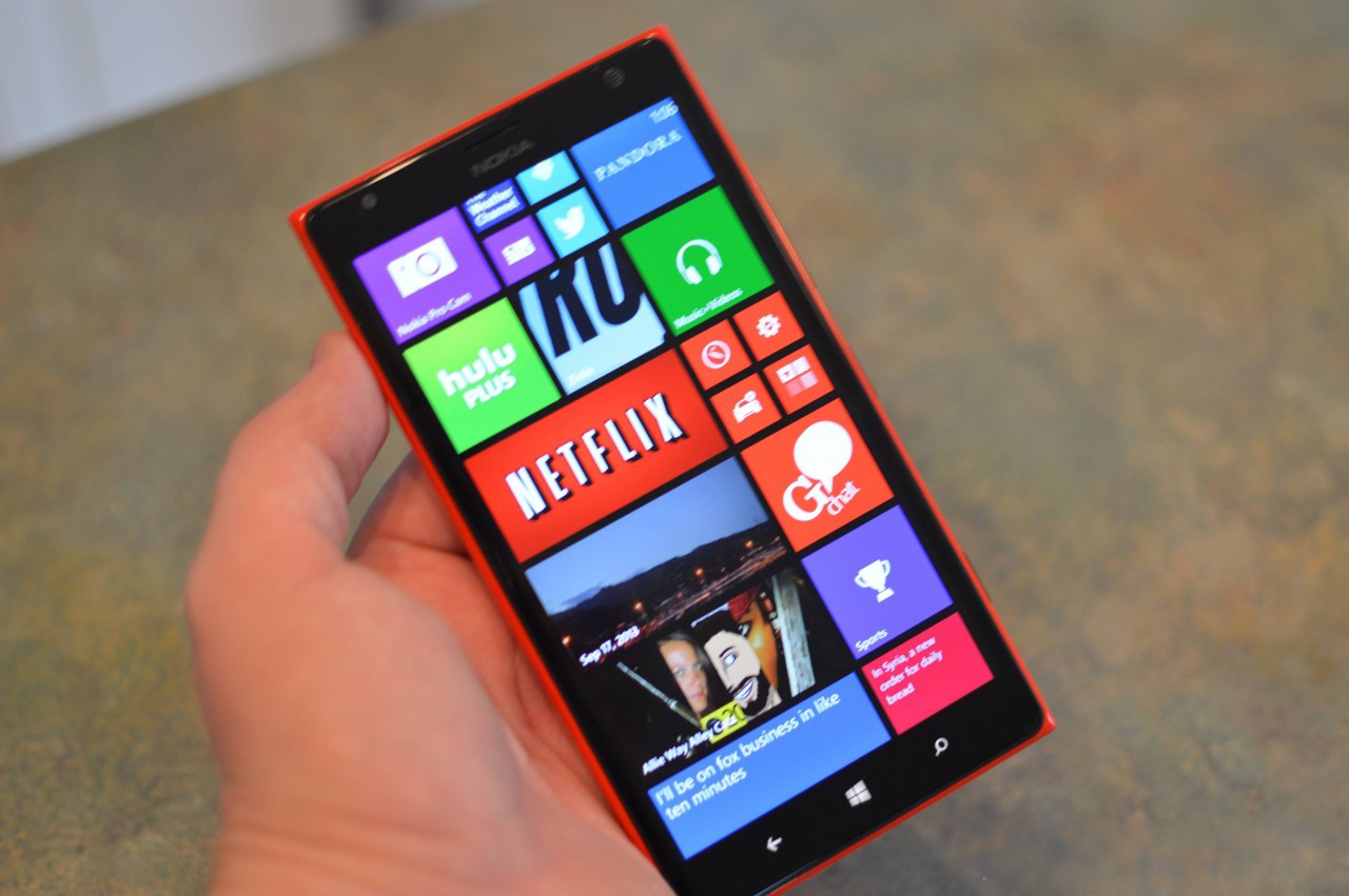 | Giao diện Windows Phone trên Lumia 1520 có đến 3 cột Live Tiles, cho phép hiển thị nhiều ứng dụng hơn trước. |