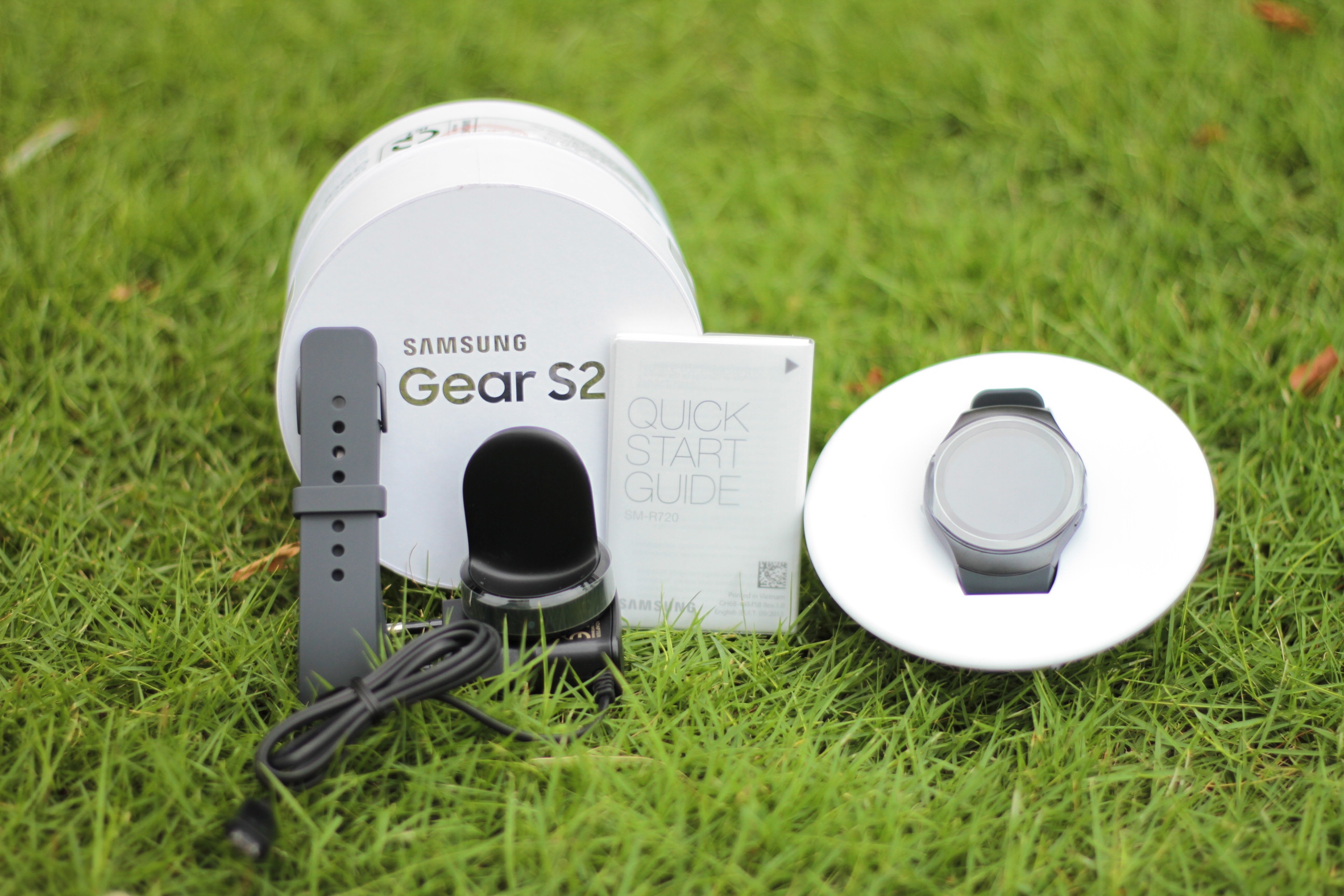 | Phụ kiện đi kèm Gear S2 gồm: Bộ dây đeo, sạc không dây, củ sạc và sách hướng dẫn sử dụng. |