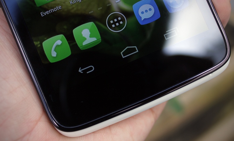 | Tương tự chiếc Nexus 4, phần dưới màn hình của Scribe HD bị thừa một khoảng nhỏ vì không sử dụng phím cảm ứng |