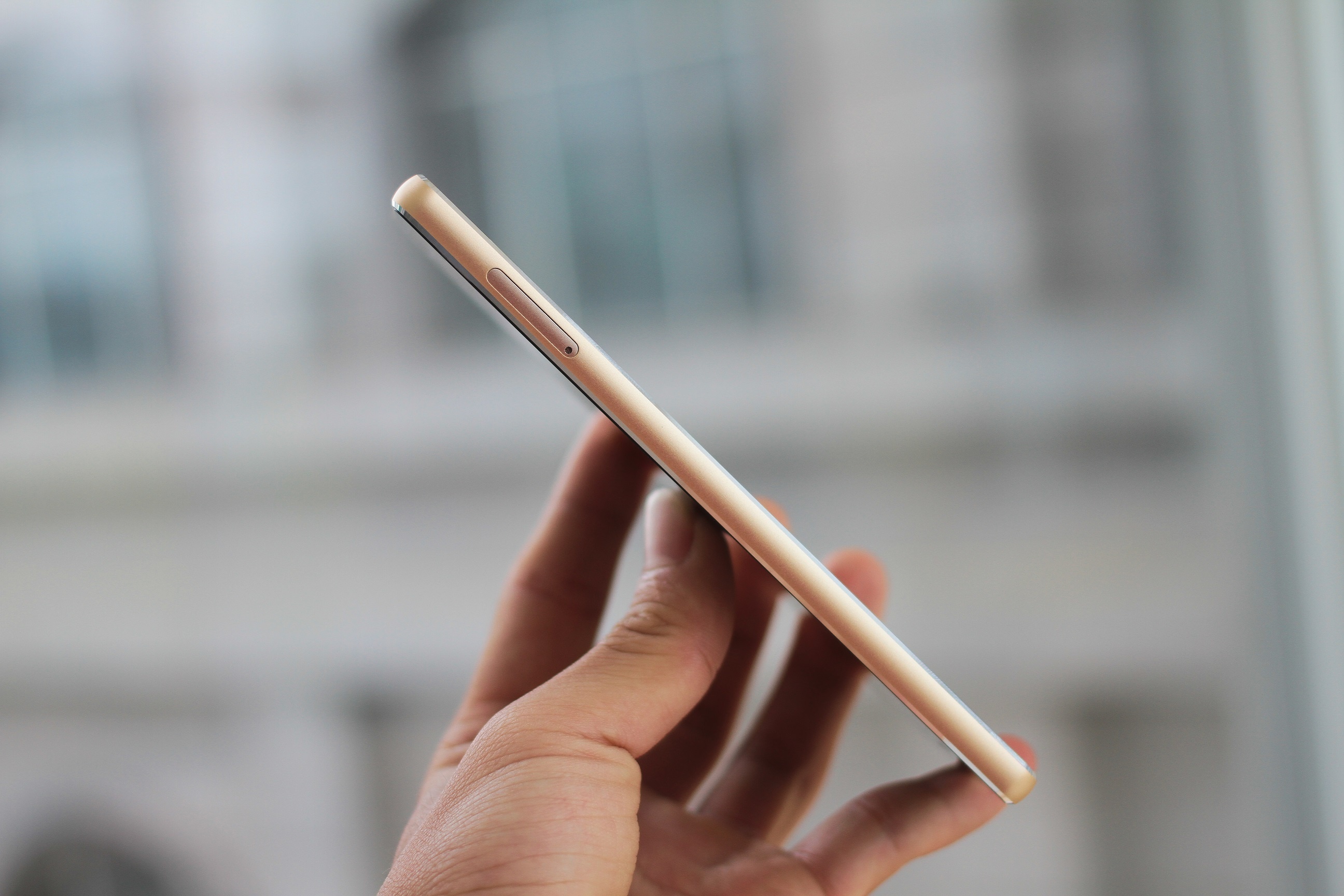 | Cạnh bên của máy được bo tròn, đường cắt CNC dọc 2 bên thân máy đem lại cảm giác rất dễ chịu khi cầm trên tay. Khe cắm SIM và thẻ nhớ nằm bên cạn trái, Prime Xense hỗ trợ 2 SIM. |