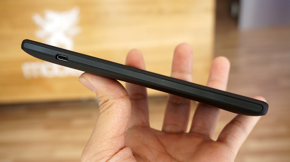 | Khe đeo phụ kiện ở cạnh dưới cũng là điểm tựa để mở nắp lưng của máy. Thử nghiệm cho thấy việc mở nắp máy rất khó khăn và mất thời gian. |