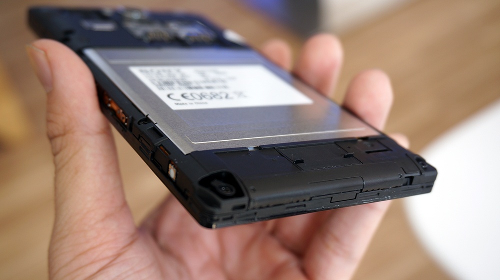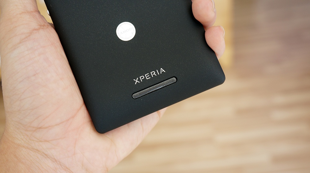 | Mặt lưng của Xperia C làm bằng nhựa có màu đen và hơi nhám. Tuy giải nguyên khối, nhưng máy mang lại cảm giác cầm khá đầm và chắc tay, rất khác so với những model Android tầm trung trên thị trường. Đây cũng là một ưu điểm của Xperia C. |