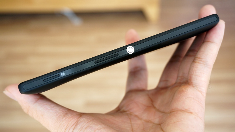 | Mặt trước của Xperia C không có phím vật lý nên các phím chức năng được dồn qua các cạnh bên. |