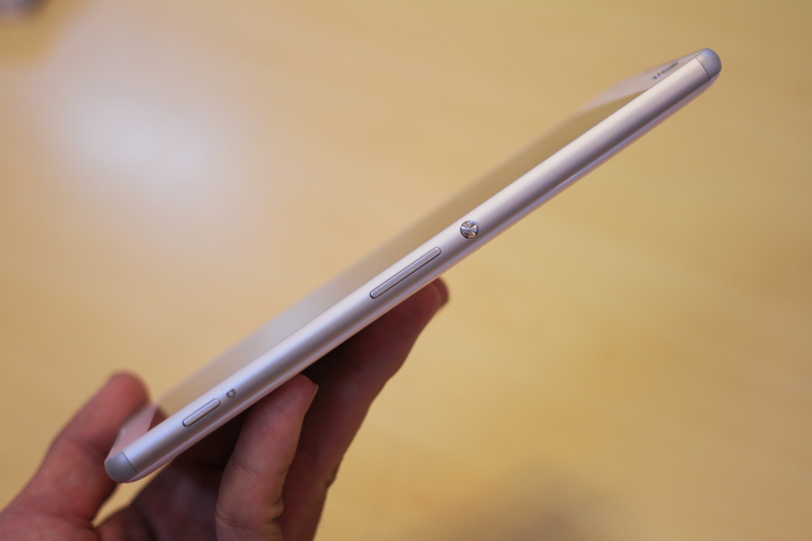| Cạnh bên là nút nguồn, phím tăng giảm âm lượng và phím cứng để chụp ảnh. |