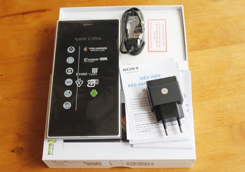 Xperia Z Ultra chính hãng chỉ đi kèm sạc pin và không có tai nghe. |