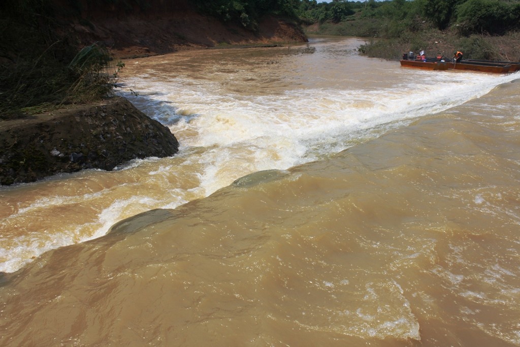| Đập tràn này có độ dốc so với mặt đất khá cao. Khi xe gặp nạn thì rất dễ bị trôi xuống. Xe ô tô 7 chỗ cùng 5 nạn nhân vừa rồi là một minh chứng. |