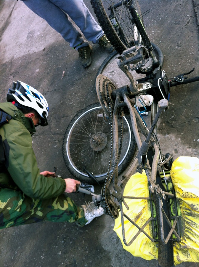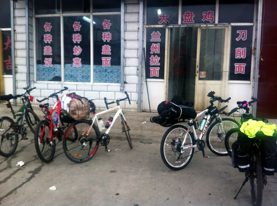 Đôi khi ba bạn trẻ phải dừng lại trong đêm để sửa xe. Ảnh: CRI.