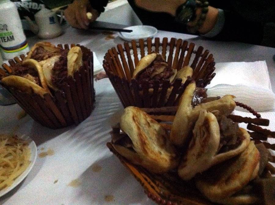 Bữa ăn nhẹ khi cả đoàn nghỉ chân. Ảnh: CRI.