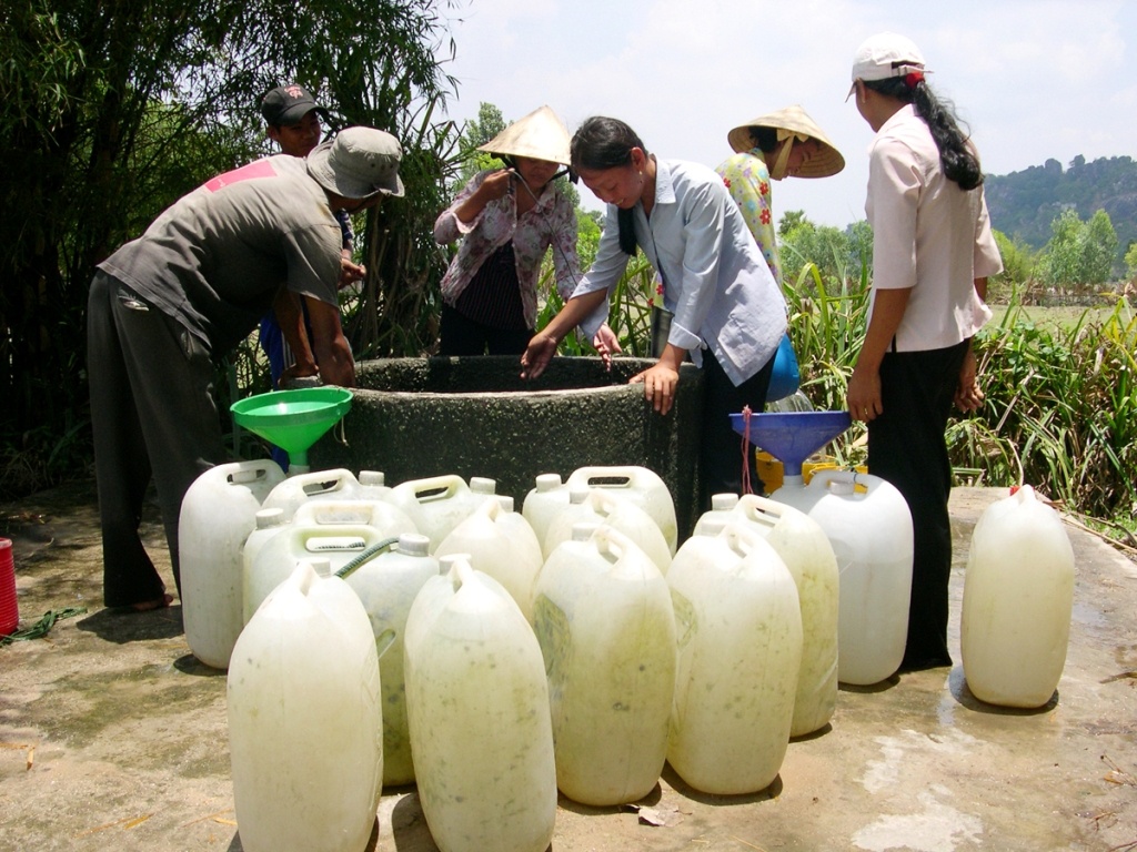 | Họ thường đi lấy nước cách nhà khoảng 2 - 4km, mỗi lần 1 - 2 can 20 lít. |