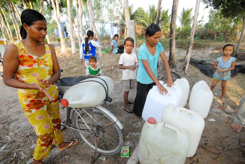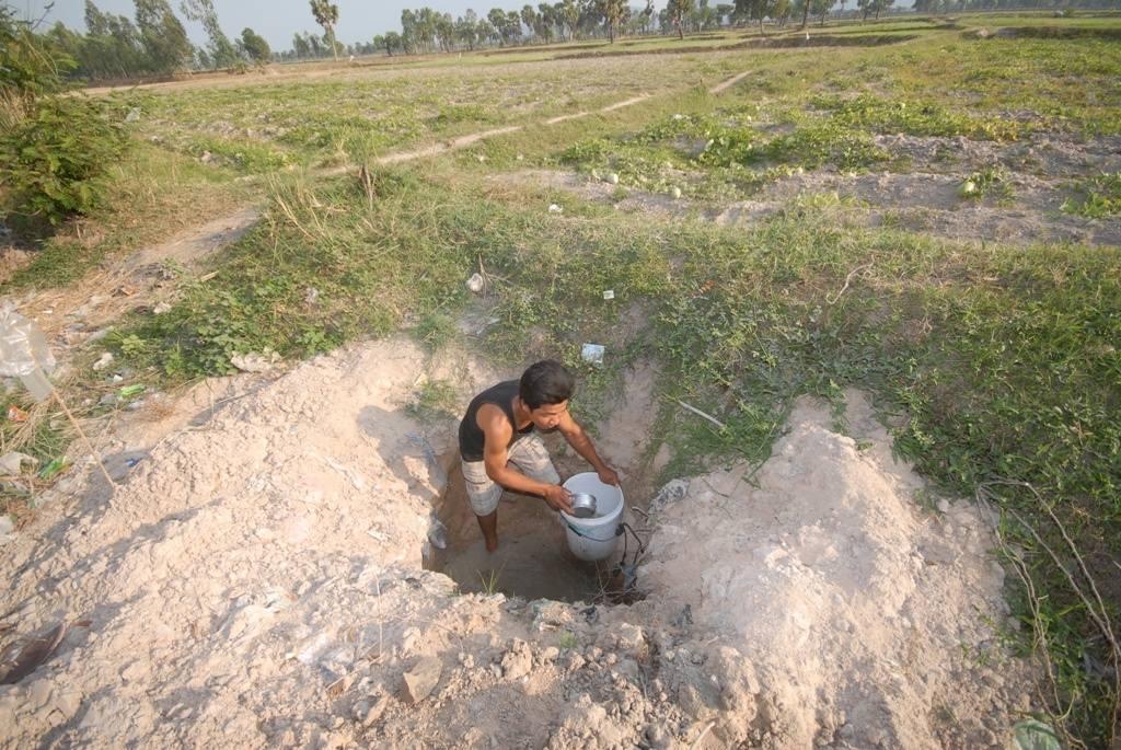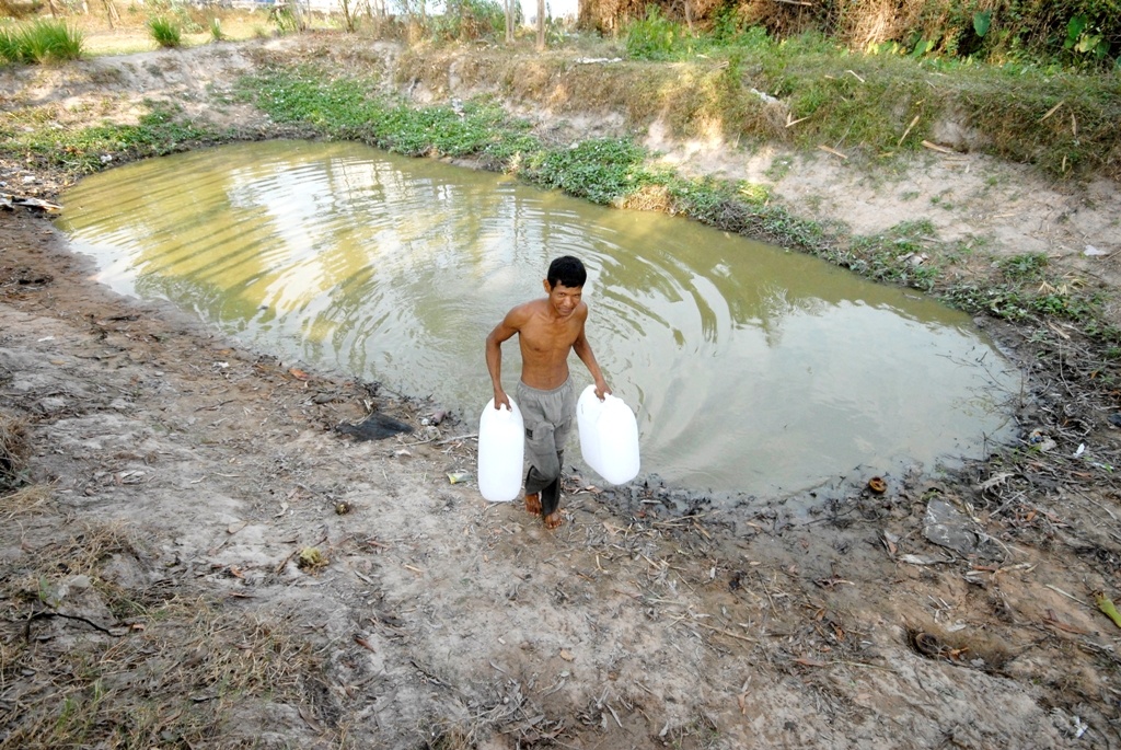 | Hiện nay vùng Bảy Núi (thuộc 2 huyện Tri Tôn và Tịnh Biên, An Giang) đang đối mặt với khô hạn nghiêm trọng. Một số hoa màu và lúa chết khô, các kênh rạch và giếng nước trơ đáy. Người dân hàng ngày phải đi vắt từng thùng nước mang về sinh hoạt. |