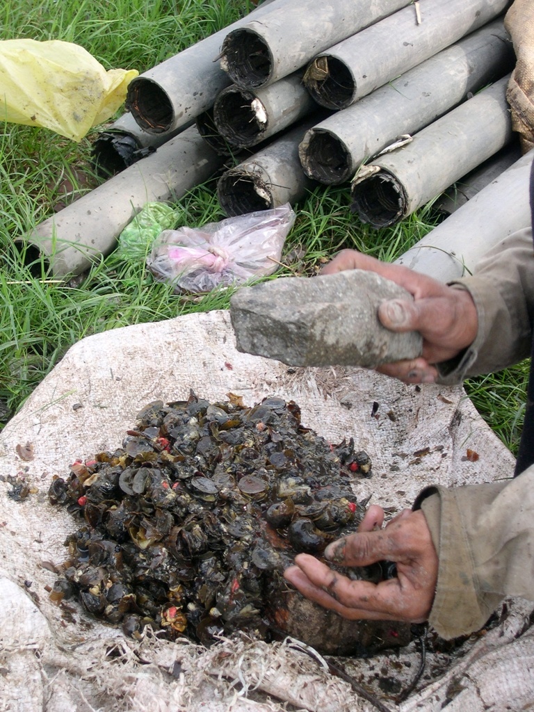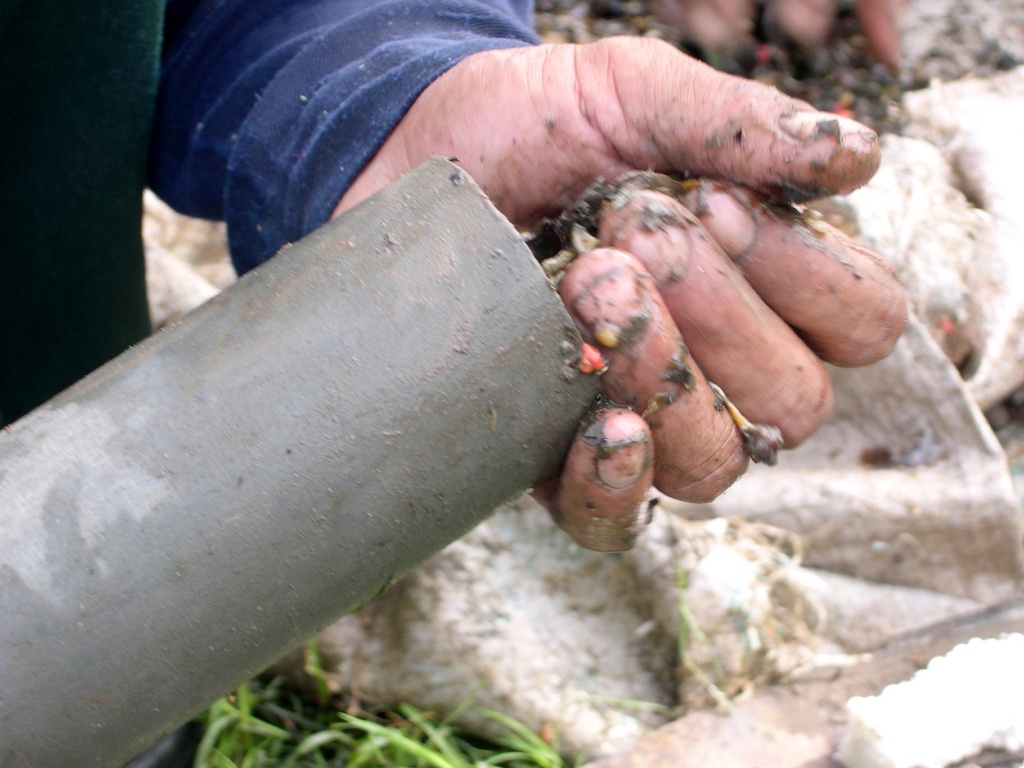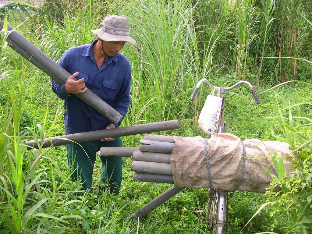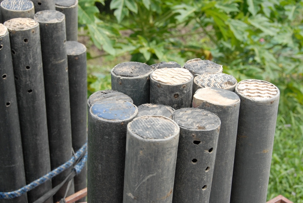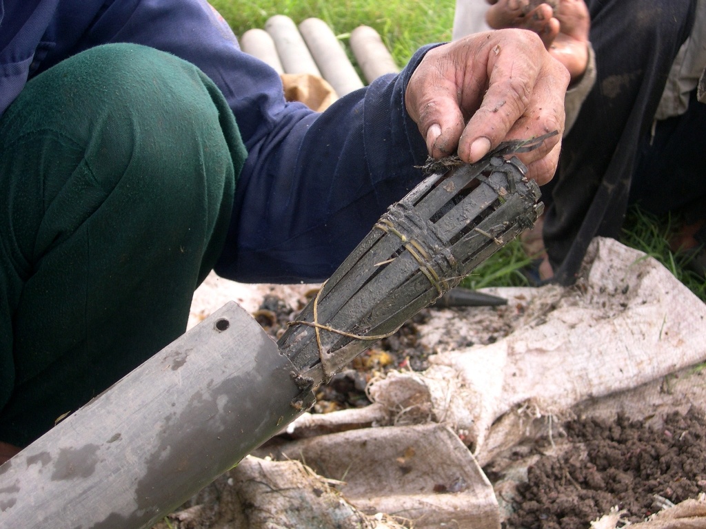 Những năm trước, người làm nghề có thể đi đặt trúm cả ban đêm lẫn ngày. Thường mỗi ống trúm như thế này đều có thể bắt được vài con lươn "say" mồi.