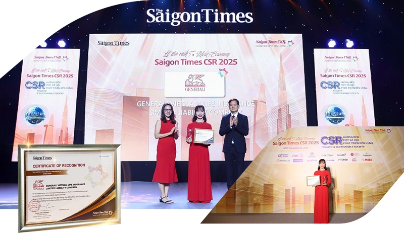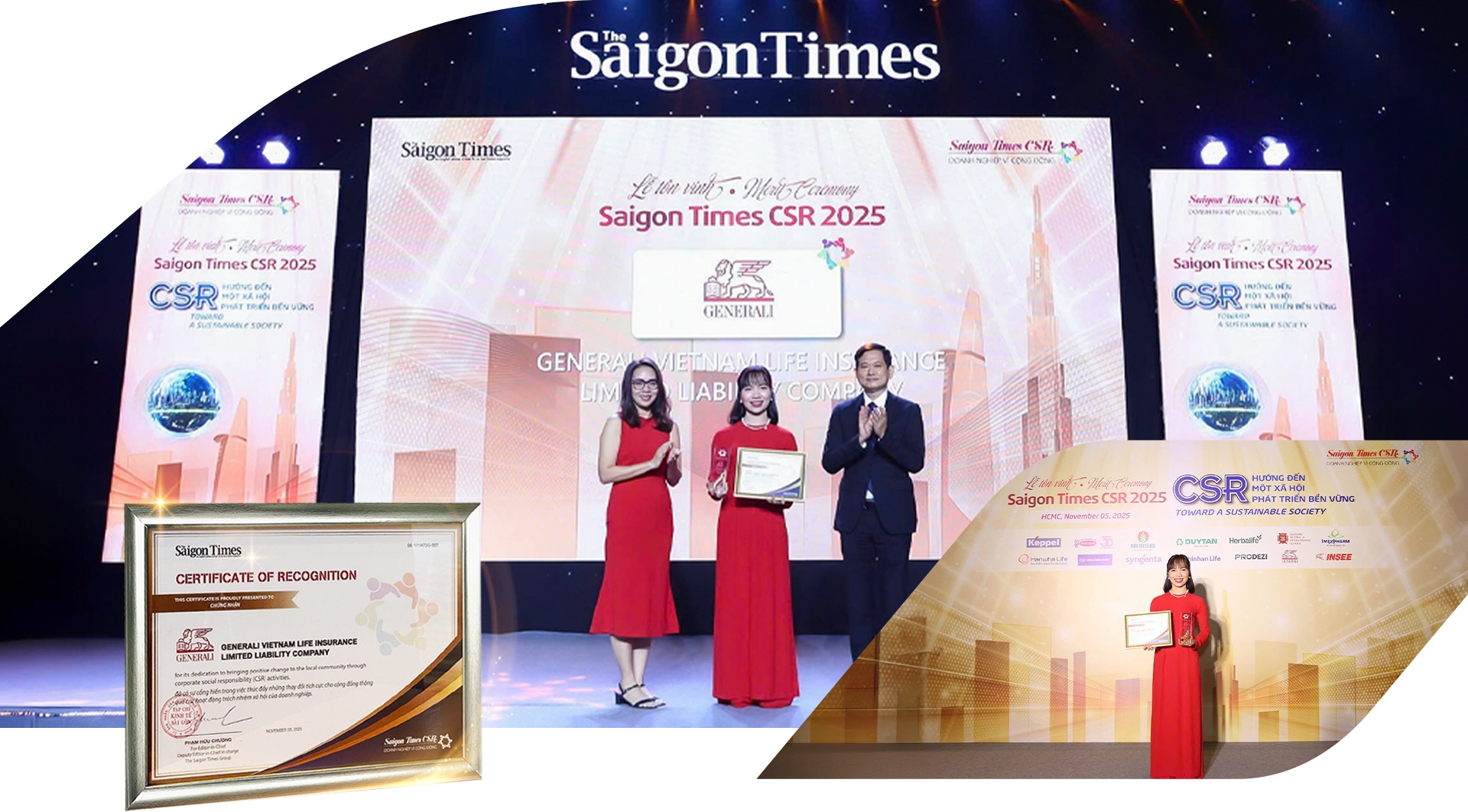 Generali Việt Nam được vinh danh “Doanh nghiệp vì cộng đồng” năm thứ 6 liên tiếp tại sự kiện Saigon Times CSR 2025 do Tạp chí Kinh tế Sài Gòn tổ chức. Giải thưởng ghi nhận những nỗ lực kiên định của doanh nghiệp trong việc thực hiện trách nhiệm xã hội, đồng hành cùng cộng đồng và đóng góp vào hành trình phát triển bền vững của đất nước.