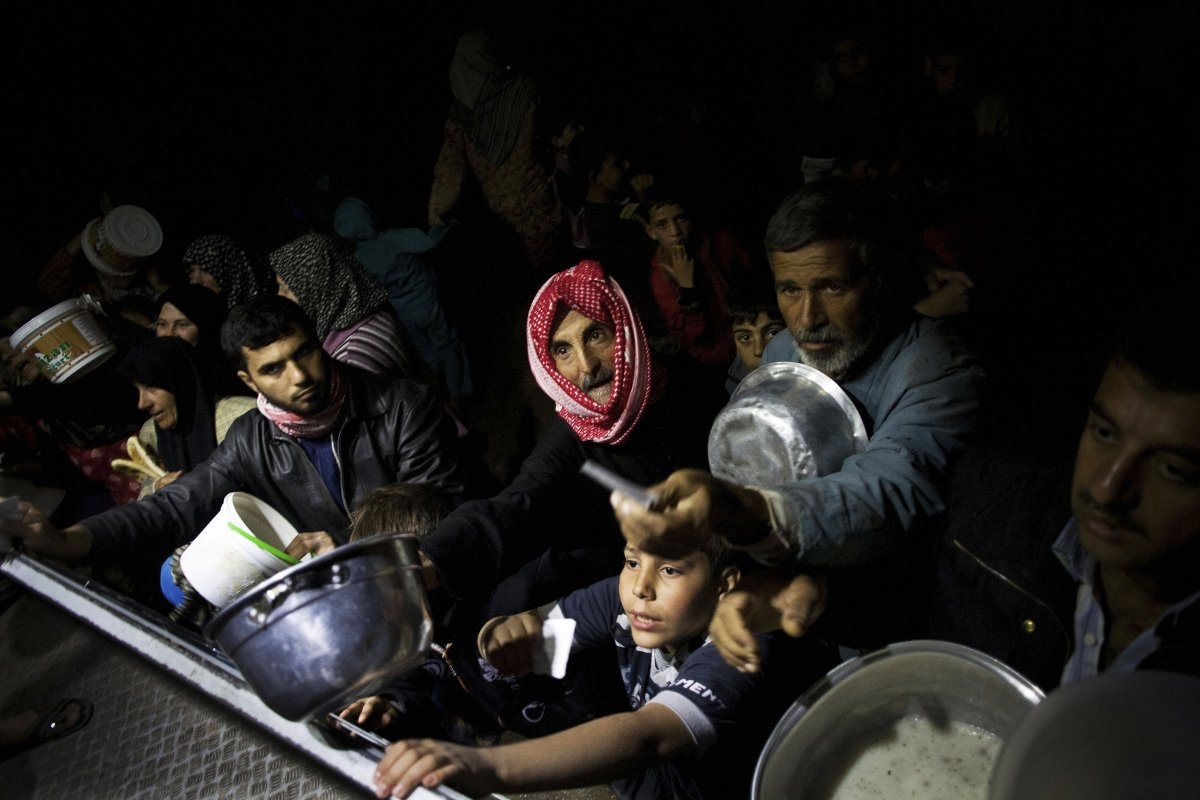 | Người tị nạn nhận thức ăn từ một tổ chức phi chính phủ ở Azaz vào ngày 23/10/2012. |