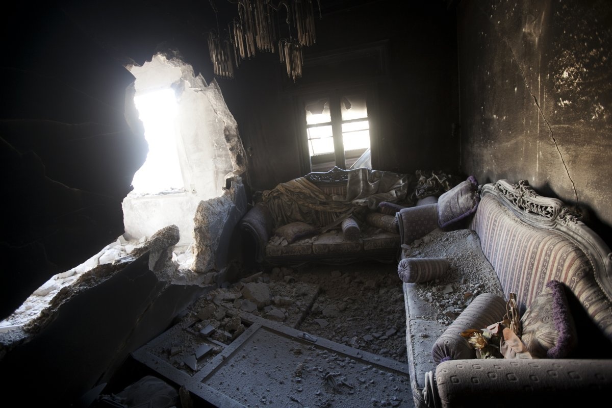 | Ngôi nhà đổ nát sau trận chiến giữa quân nổi dậy và quân đội Syria ở Karm al-Jabel ngày 28/10/2012. |