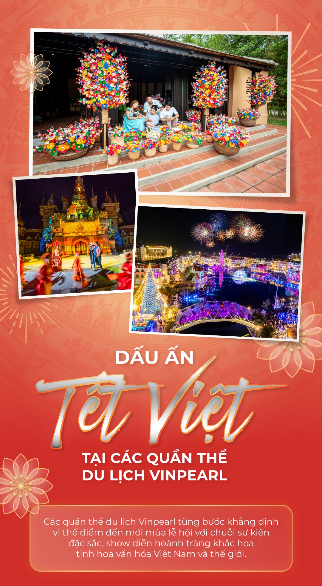 Du khách đến Vinpearl dịp Tết cổ truyền có thể tận hưởng nét văn hóa độc đáo của dân tộc thông qua chuỗi hoạt động tưng bừng, trải nghiệm nghỉ dưỡng, giải trí và vui chơi đẳng cấp thế giới. Tất cả trải nghiệm tại đây hứa hẹn tạo nên kỳ nghỉ du xuân rực rỡ, mang đến khởi đầu may mắn và trọn vẹn cho du khách trong và ngoài nước.